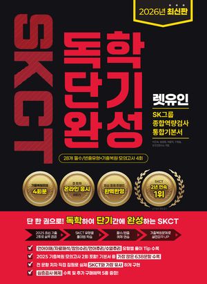 26,000원1,300p*36개월 SK 베스트셀러 1위! 온라인 SKCT에 최적화된 SK그룹 종합역량검사 통합 기본서 25년 기출복원 100제 수록 + 실전모의고사 전 4회차 온라인 응시 & 성적분석 서비스 제공 (*36개월 근거: 표지 맨 뒷장 참조) 최신 시험 변화 반영, 전면 개편 최근 SKCT 출제 경향과 상승한 난도를 반영해 영역별 구성과 해설을 대폭 강화했습니다. 36개월 베스트셀러에 걸맞은 완성도로 고득점에 필요한 핵심 학습 요소만을 선별해 담았습니다. 2025년 최신기출 복원 100제 수록 실제 온라인 SKCT 필기시험 기출을 복원한 문항으로 출제 흐름을 사전 체험하고, 영역별 실력 점검이 가능합니다. 5개 영역 유형별 공략 시스템 언어이해·자료해석·창의수리·언어추리·수열추리 5개 영역을 최신 출제 흐름에 맞춰 세분화했습니다. 유형별 기출 분석, 해결 TIP, 예제 학습을 통해 문제 접근 방식과 사고 과정을 자연스럽게 익힐 수 있도록 구성했습니다. 실전모의고사 + 온라인 응시 서비스 제공 실제 시험과 동일한 구성의 실전모의고사 4회분 제공. 전 회차 온라인 응시 서비스를 통해 시간 관리와 문제 풀이 흐름까지 실전처럼 반복 훈련할 수 있습니다. 심층역량검사 대비까지 한 번에 두 파트로 구성된 심층역량검사 답변 전략과 예제 1회분 수록으로 적성·인성·역량 영역을 통합 대비할 수 있습니다. 상세 해설 + 취약 유형 분석 시스템 문항별 상세 해설, 오답 분석, 문제 해결 TIP 제공. 취약 유형을 빠르게 파악하고 효율적인 학습 전략 수립이 가능합니다.