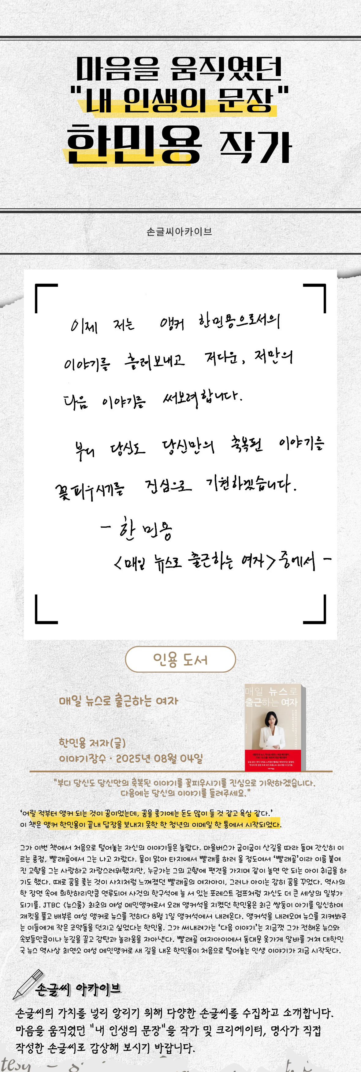 당신의 이야기가 궁금한 사람. JTBC 기자 겸 앵커. 펜으로 세상을 바꿀 수 있다고 믿어 기자가 됐다. 2013년 기자 생활을 시작해 어느덧 10년 차다. 그중 절반은 사회부 기자로, 대한민국에서 일어난 온갖 사건·사고를 취재하며 보냈다. ‘그래도 살 만한 세상이다’라는 말을 좋아한다. 2018년부터는 〈뉴스룸〉 주말 앵커를 맡아 평일에는 현장을, 주말에는 스튜디오를 오가는 생활을 계속하고 있다. 여전히 낭만적 저널리즘을 꿈꾼다._작가의 말