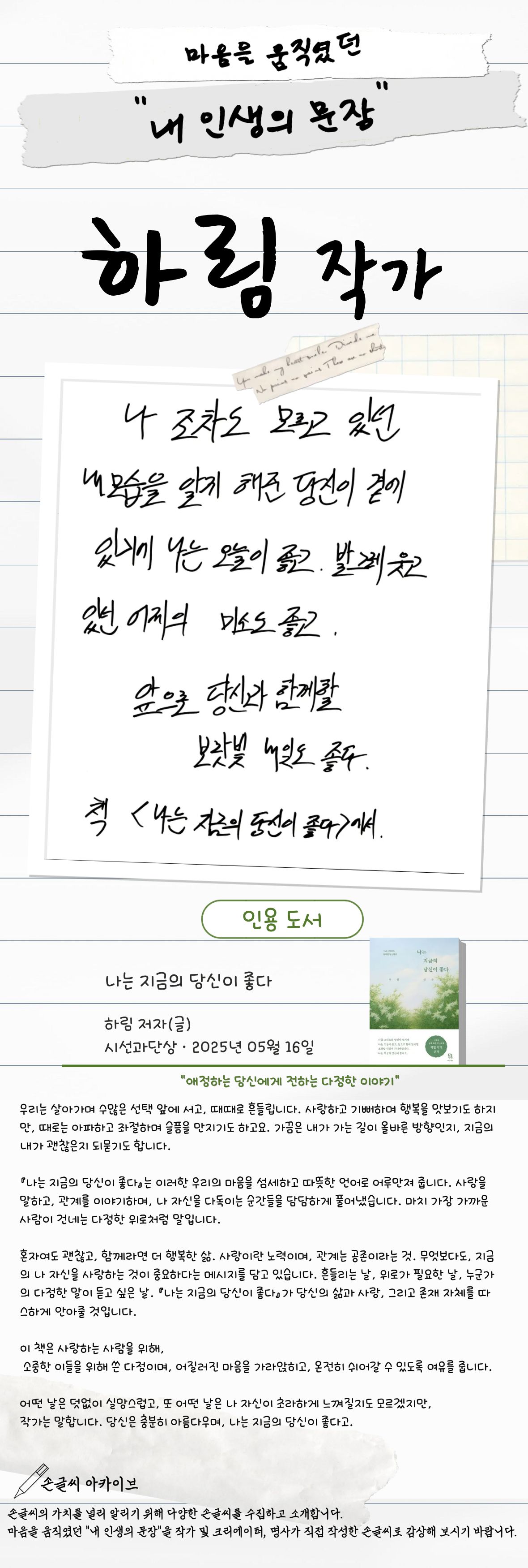 하림 작가의 "내 인생의 문장"